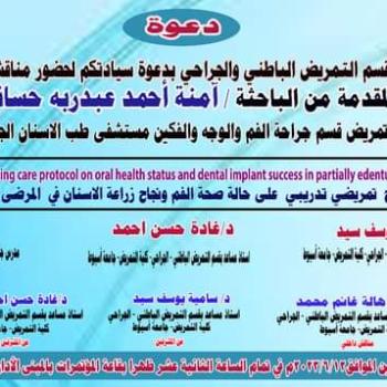 With pictures, the master's thesis of the researcher / Amna Ahmed Abd Rabbo Hassanein, supervisor of nursing, Department of Oral and Maxillofacial Surgery, University Dental Hospital, obtained an excellent grade
