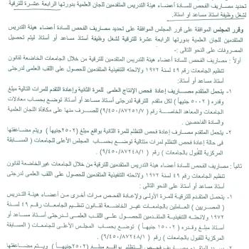 A memorandum regarding determining examination expenses for the faculty members of the scientific committees in their fourteenth session for promotion to fill the position of assistant professor or professor