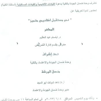 The Quality Assurance Unit of the Faculty is honored to invite academic leaders and future leaders (faculty professors) to attend an introductory seminar on " Towards a distinguished academic future "