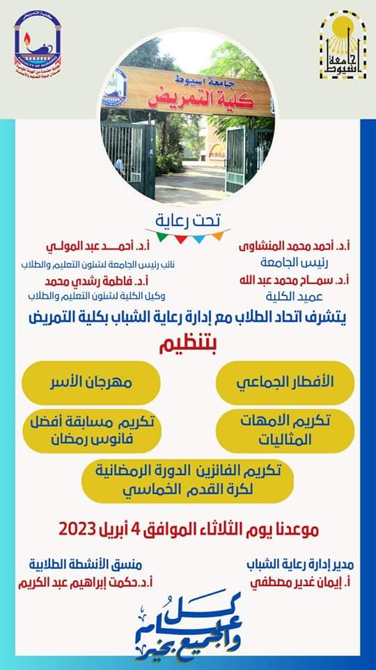 Prof. Dr. Fatima Rushdi Mohammed, Dean of the Faculty of Nursing at Assiut University, along with the Vice Deans, Heads of Academic Departments, and all administrative staff, extend their warmest heartful congratulations