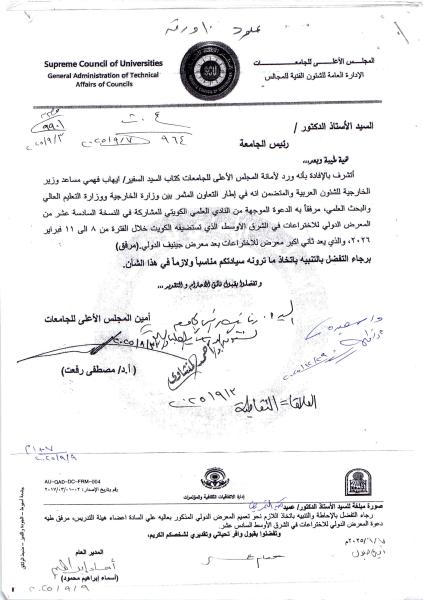 1- The International Exhibition of Inventions in the Middle East, hosted by Kuwait during the period from 8 to 11 February 2026 30 December 2025