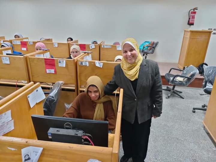of Mr. Prof. Dr. Ahmed Mohamed El-Minshawy, President of the University, Mr. Prof. Dr. Samah Mohamed Abdullah, Dean of the College, and the supervision of Mr. Prof. Dr. Ikram Ibrahim Mohamed, Vice Dean of the College for Affairs. Postgraduate Studies and Research Postgraduate students take their first exams for the subject Master’s exam, first semester, human development and self-development, doctoral exam, first semester, subject Modern Trends In Nursing, Diploma exam, first semester, subject Quality Management, amid strict precautionary measures and providing the appropriate climate for them, wishing them progress and success