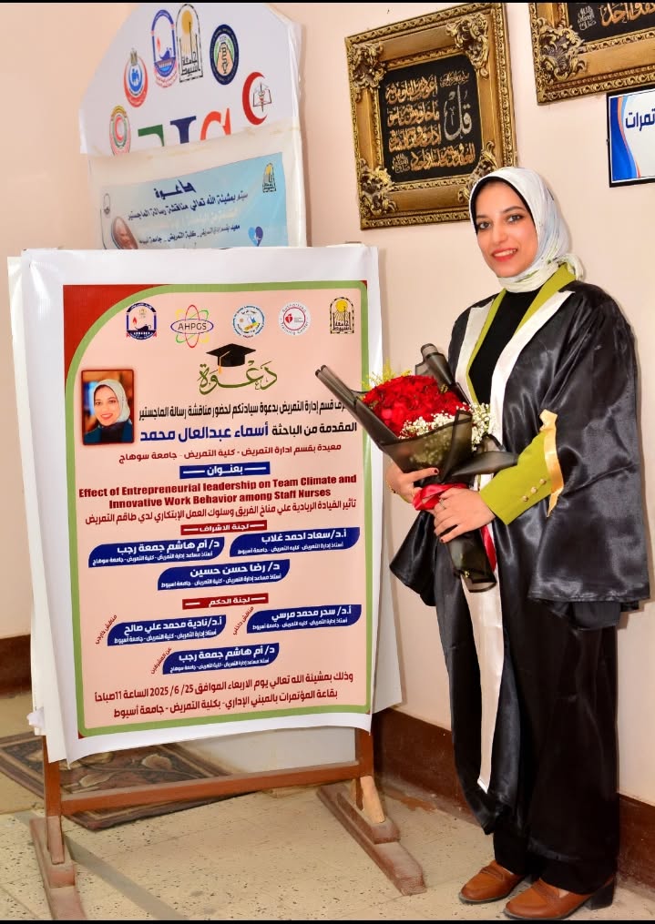 Acceptance of the master's thesis of the researcher/ Asmaa Abdel Aal Muhammad, a teaching assistant in the Department of Nursing Administration, Faculty of Nursing - Sohag University