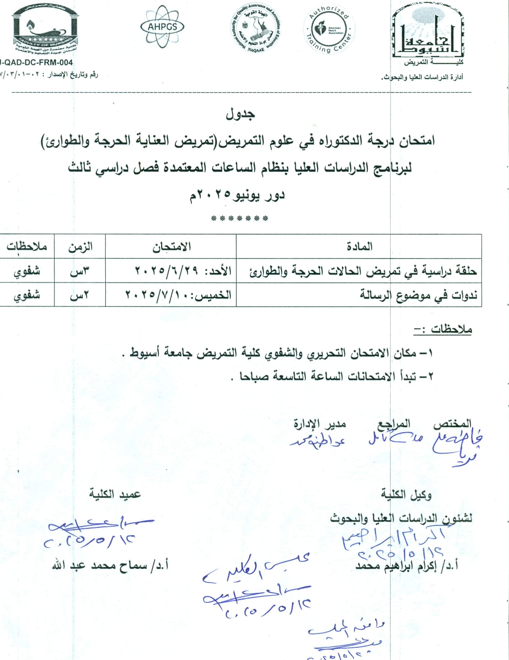 Prof. Dr. Sahar Mohamed Morsi, Professor of Nursing Administration, Faculty of Nursing, Assiut University. (Internal examiner)