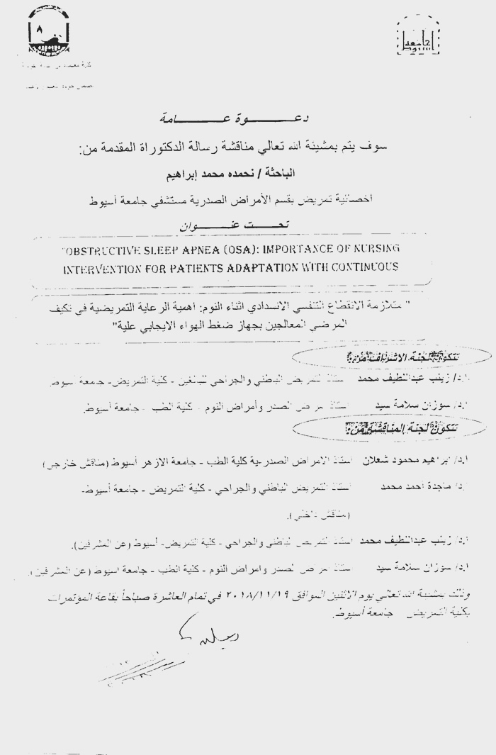 By God willing, meeting of medical surgical nursing department council chaired by Prof. Dr./ Zainab Abdul Latif Mohammed, Faculty Dean & Head of the Department, will be held on Tuesday, 6/11/2018, in the presence of teaching staff members of the department and their assistants at the department council hall.