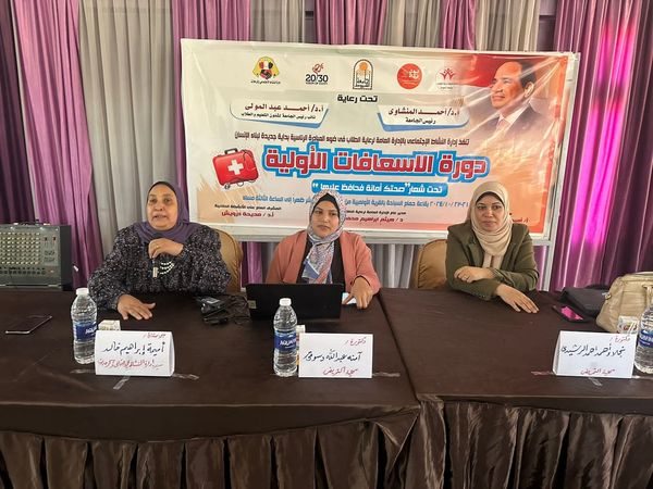 Participation of Nursing College students in the first aid course in light of the presidential initiative (A New Beginning for Building a Human Being) under the slogan (Your health is a trust, so protect it) at the university college level.