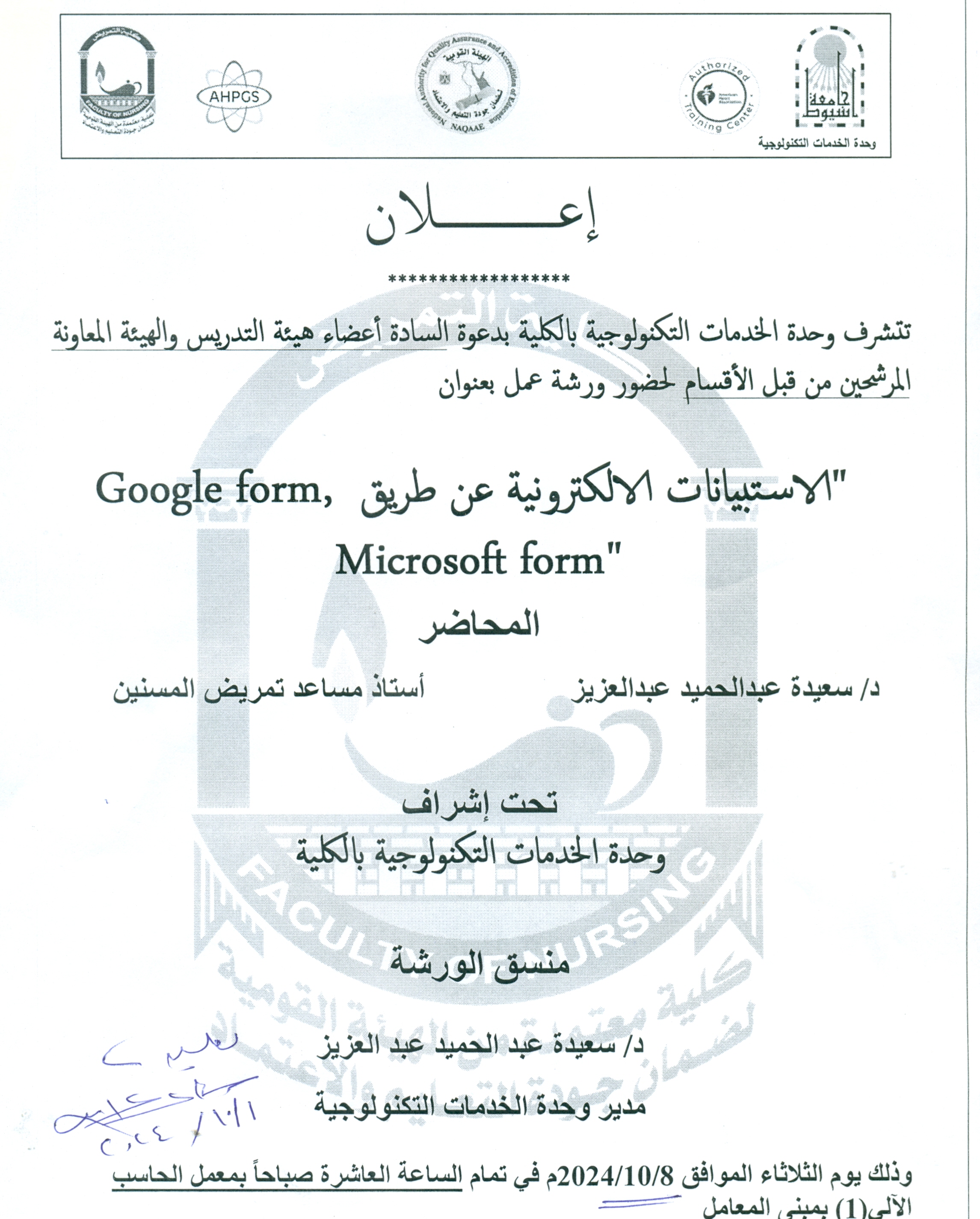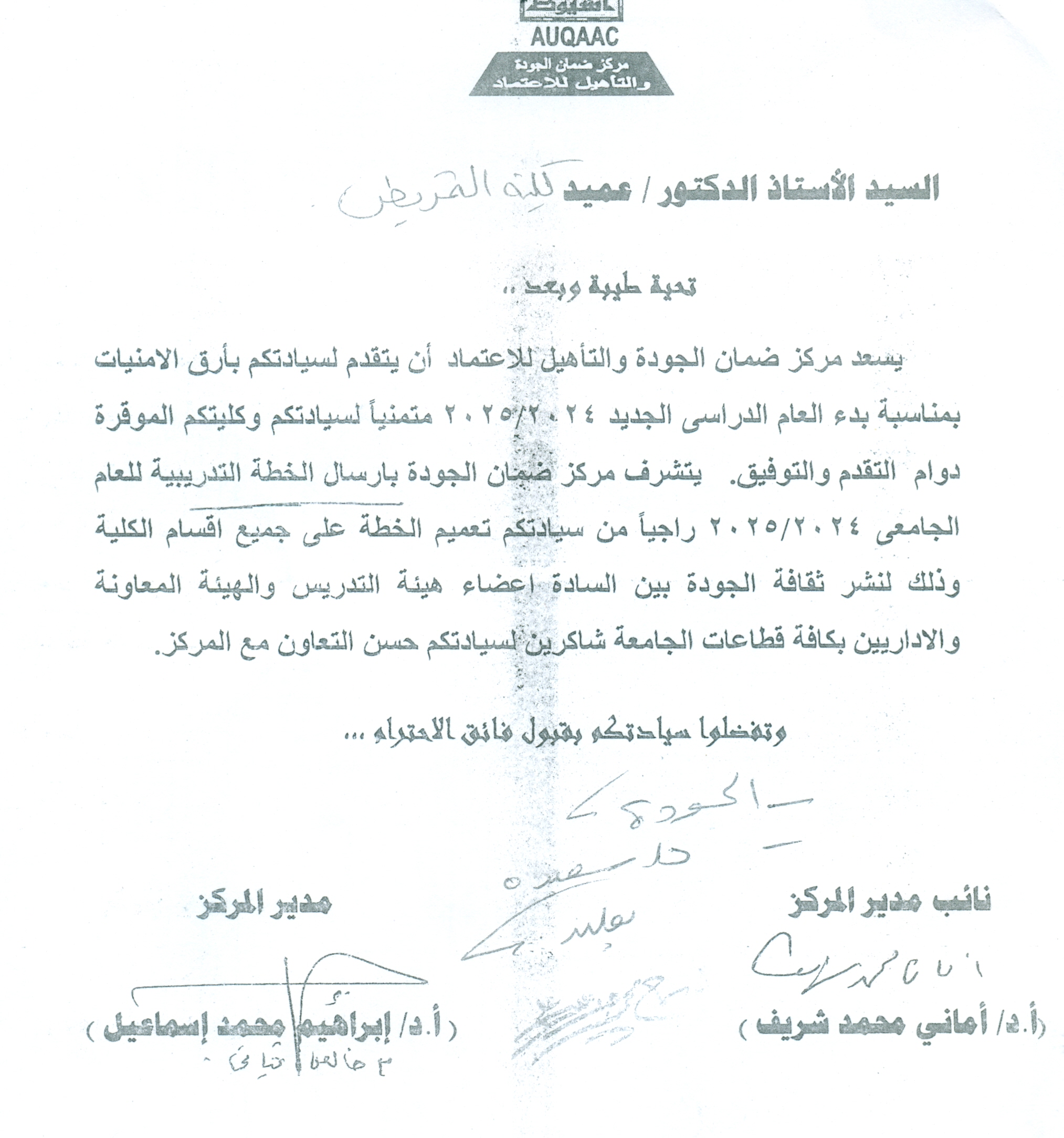 Under sponsorship Mr. Ahmed Al-Minshawy, President of the University Mr. Professor Dr. Ahmed Abdel Mawli, Vice President of the University for Education and Student Affairs Mr. Professor Dr. Samah Muhammad Abdullah, Dean of the College