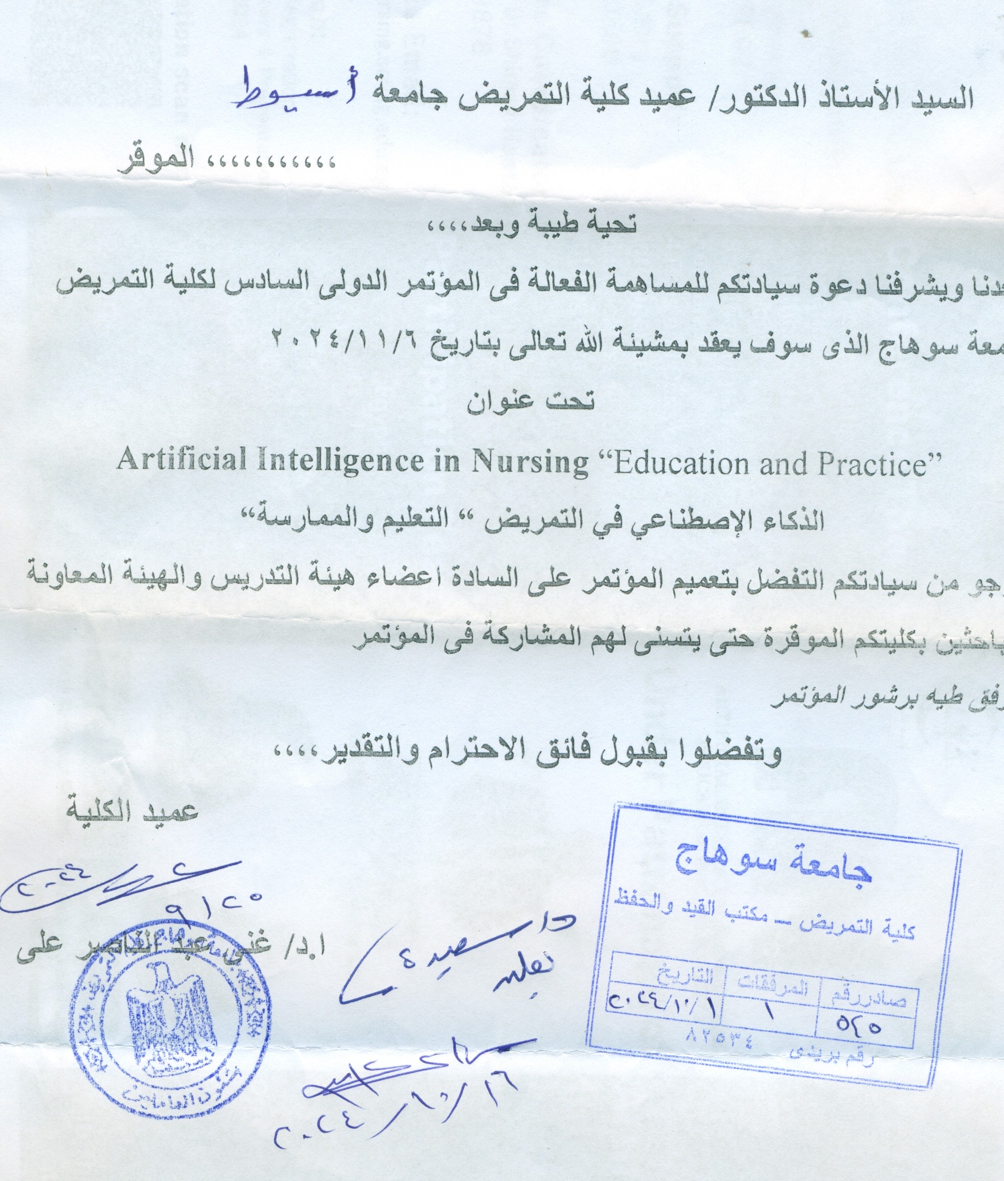 Dr. Marwa Ali Al-Masry, Assistant Professor of Internal and Surgical Nursing, Assiut University (on behalf of the supervisors)