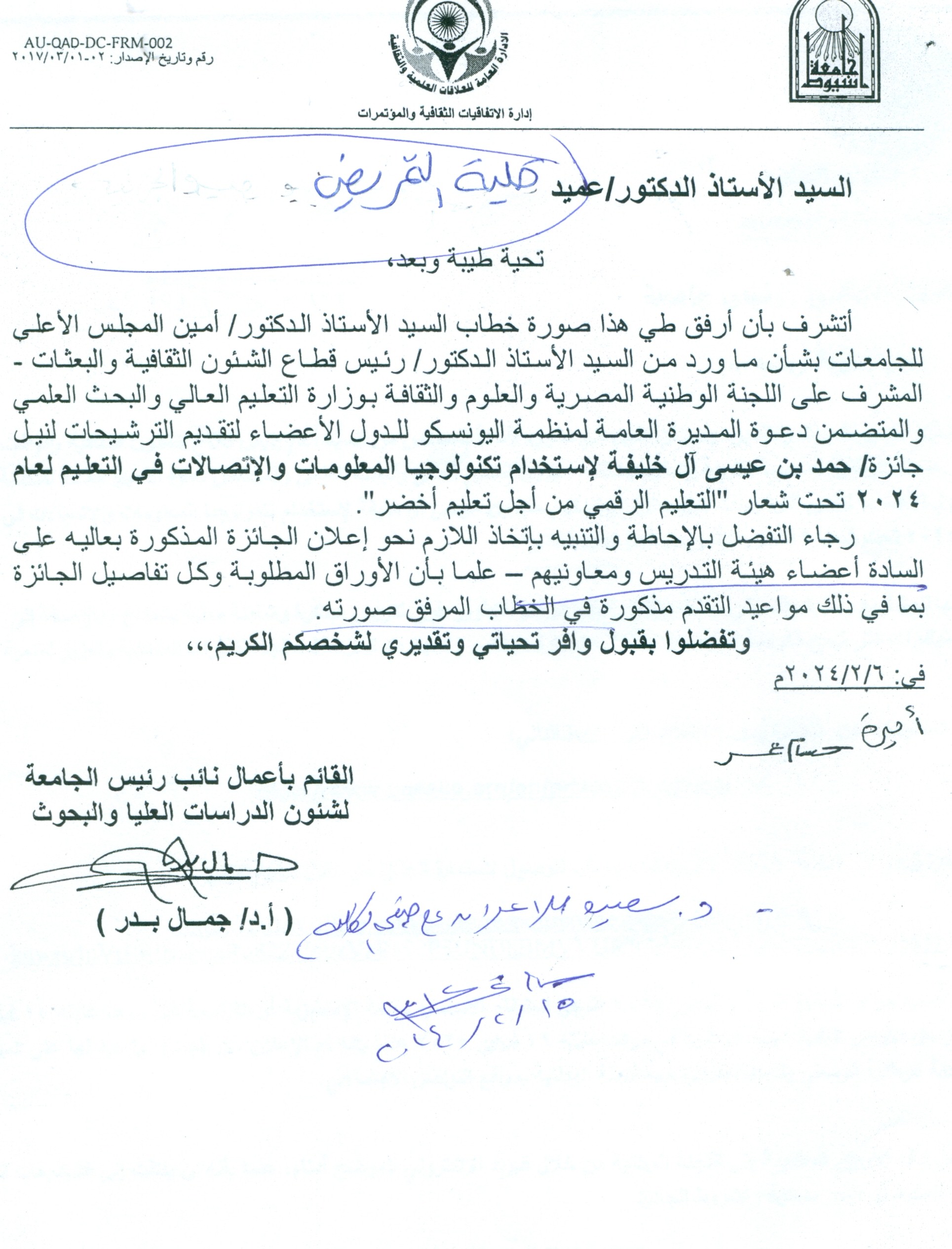 The Sixth International Conference of the Faculty of Nursing, Assiut University, which will be held in the second half of next February 2024 under the patronage of Professor Dr. Ahmed El-Minshawy, President of the University.