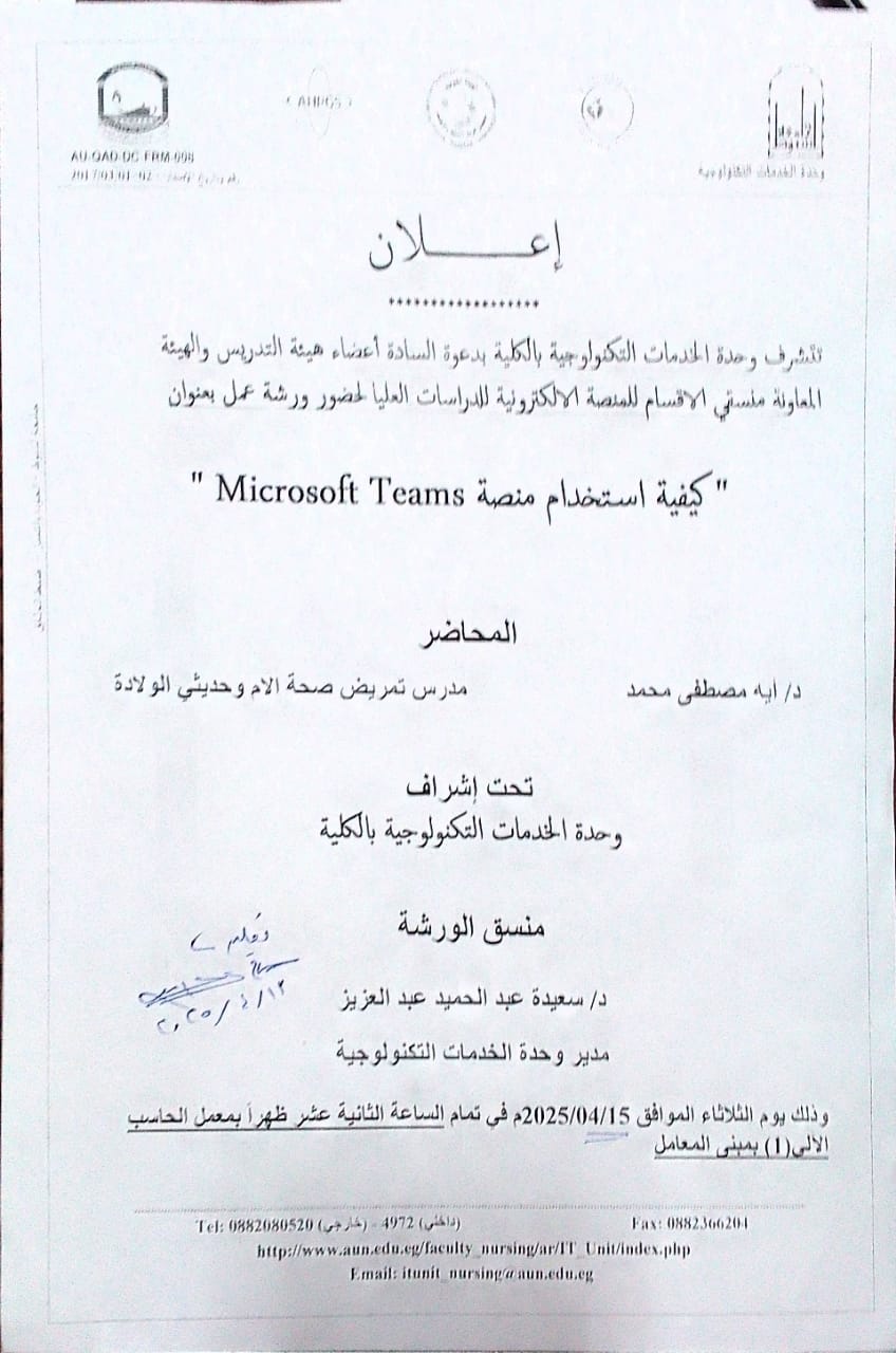 2025-04-15 12 ظهرا Tue, 15 Apr 2025 - 12:00 A photo workshop on how to use the Microsoft Teams platform