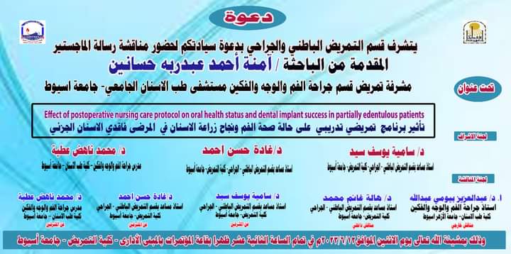 Dr. Mohamed Nahed Attia, Lecturer of Oral and Maxillofacial Surgery, Dentistry, Assiut University (on behalf of the supervisors)