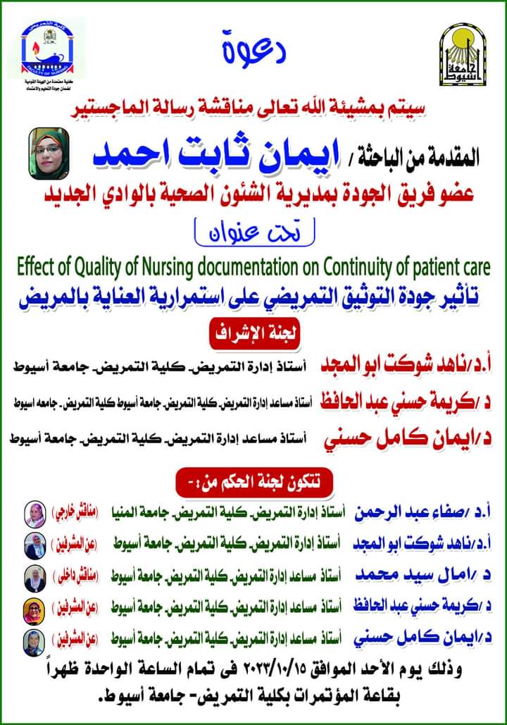 Dr. Eman Kamel Hosny, Assistant Professor, Department of Nursing Administration, Faculty of Nursing, Assiut University (from the supervisors)
