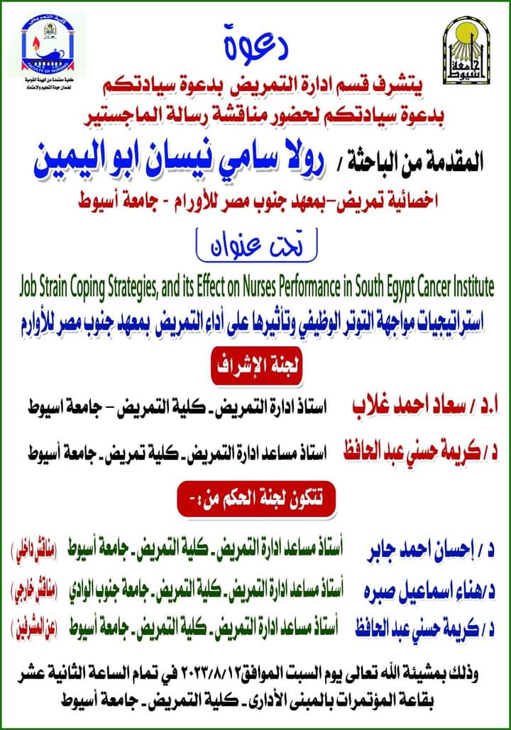 Prof. Souad Ahmed Ghallab, Professor of Nursing Administration, Faculty of Nursing, Assiut University (on supervisors(