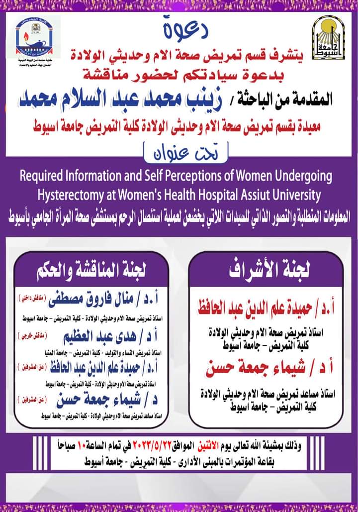 Required information and self-perception of women who undergoing hysterectomy at the Women’s Health Hospital Assiut university) with a grade of excellence