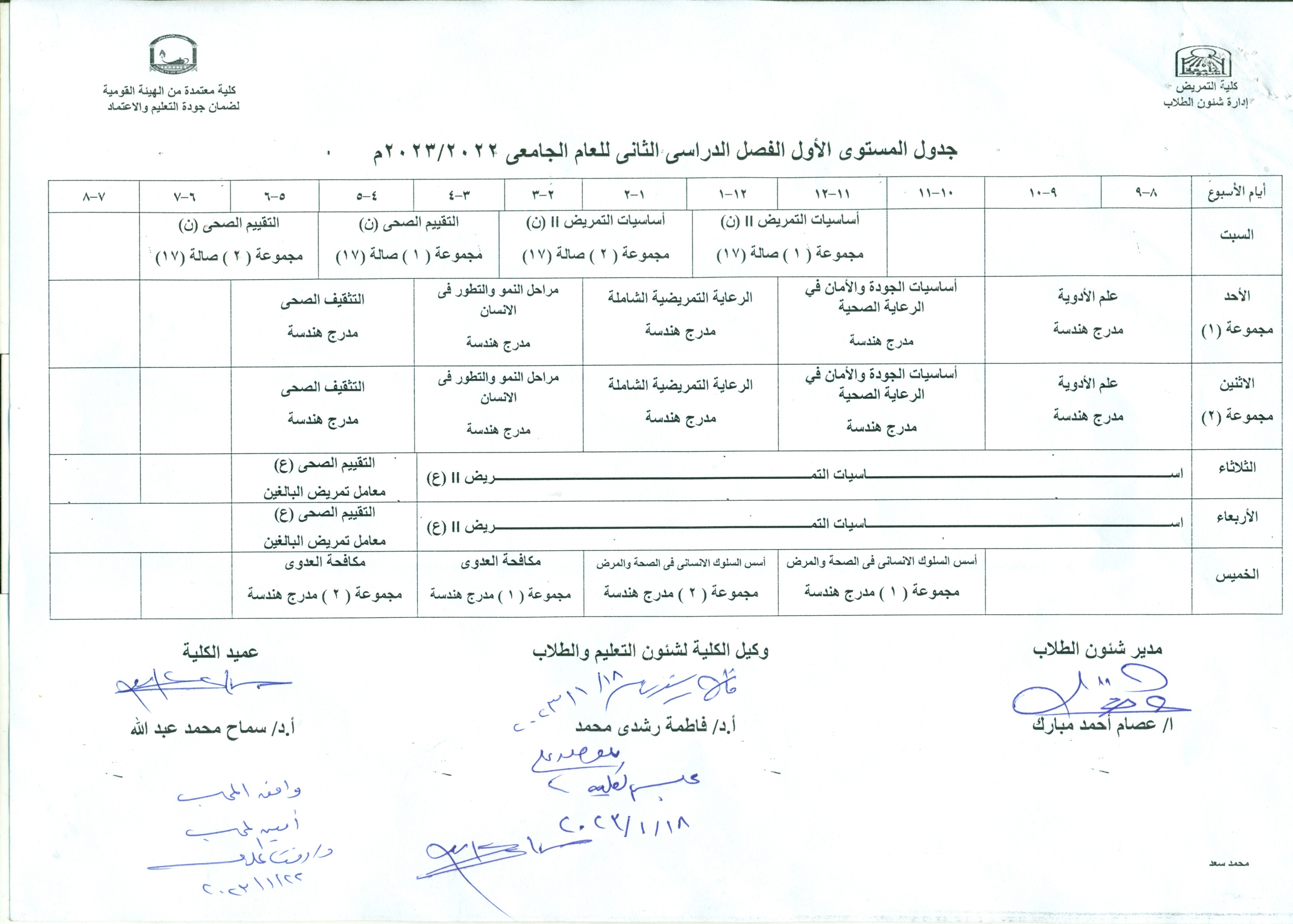 schedule of the first level (credit hours) for the second semester of the academic year 2022-2023 AD 6 February 2023