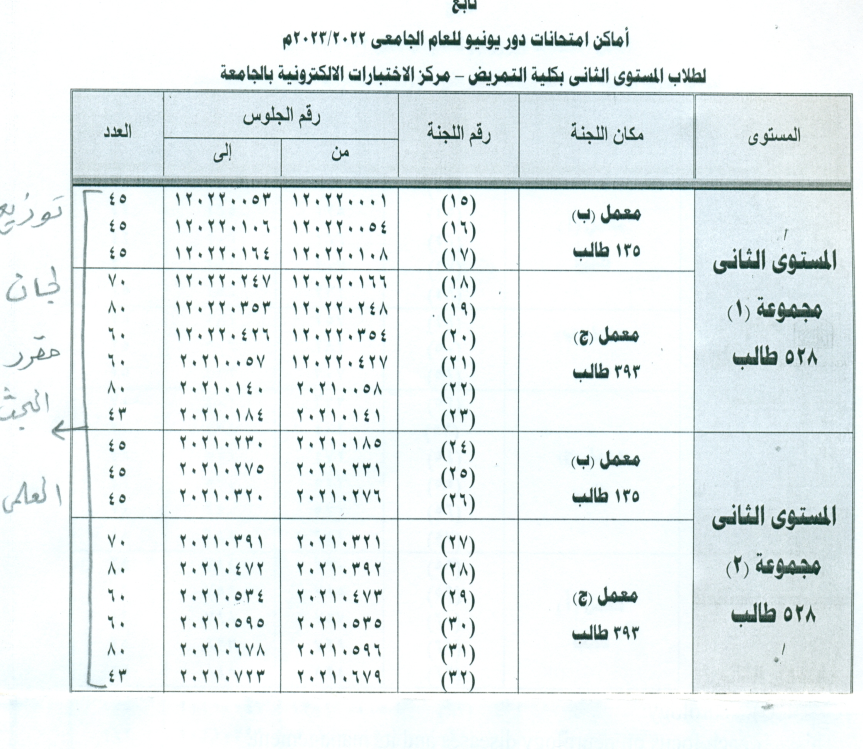 A statement of the locations of June exams for the academic year 2022-2023 for second-level students at the College of Nursing continued - the university's electronic examination center