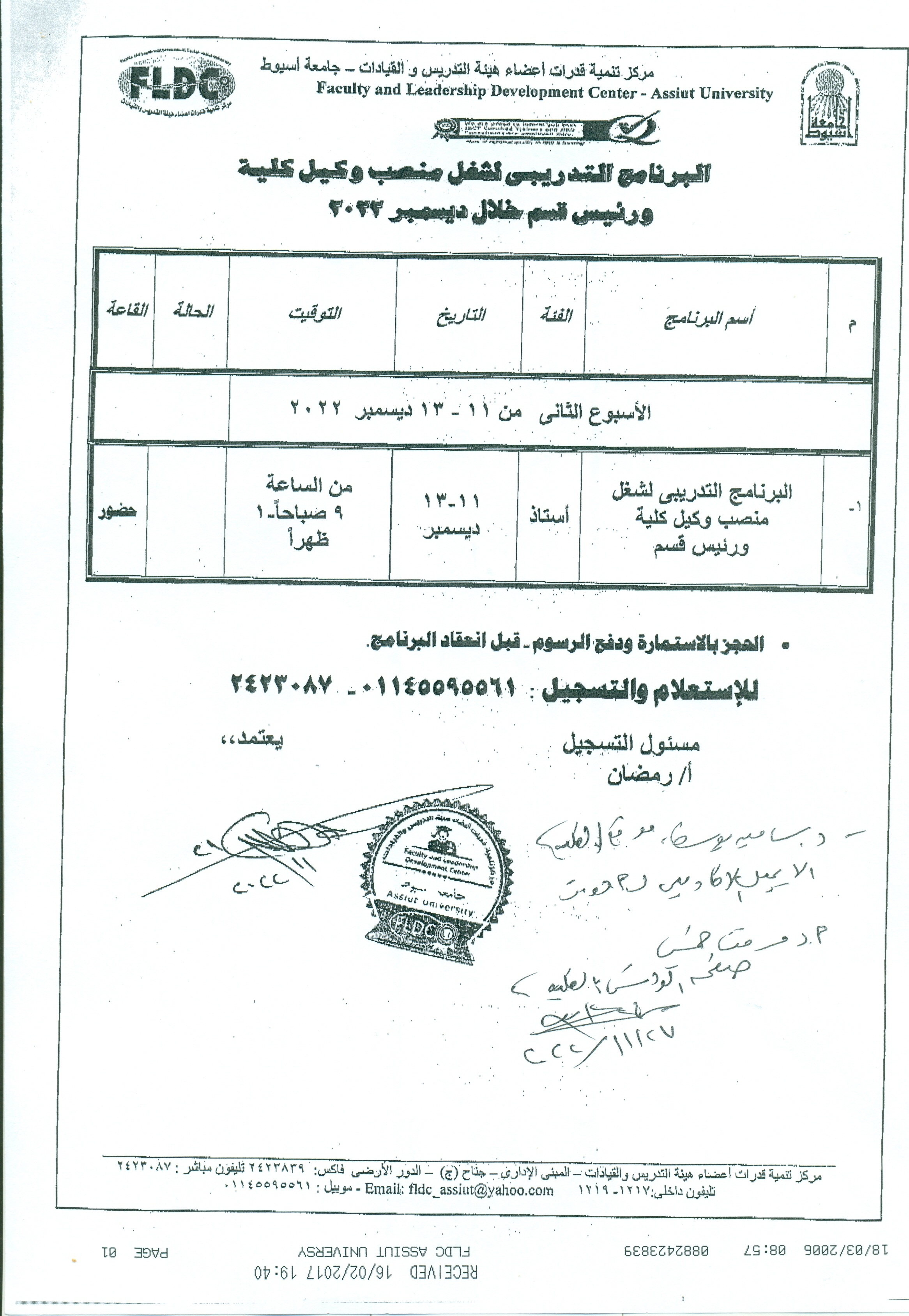 The training program for the position of vice-faculty and head of department during December 2022 28 November 2022