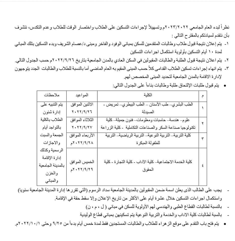 University cities housing schedule