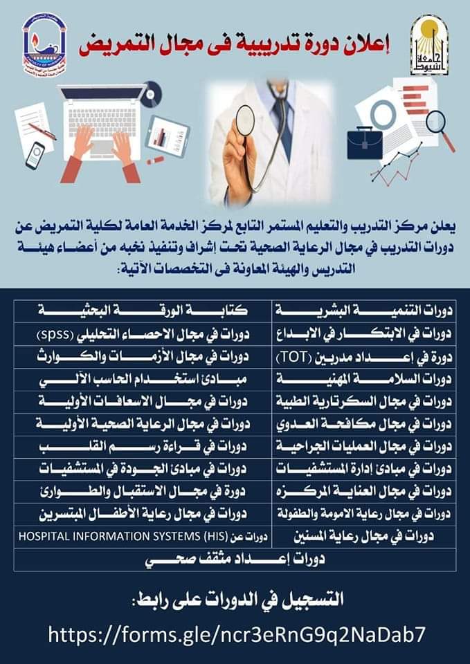 To whom it may concern, the Training and Continuing Education Center announces the holding of several training courses in many fields. Those who wish to participate must register with the link