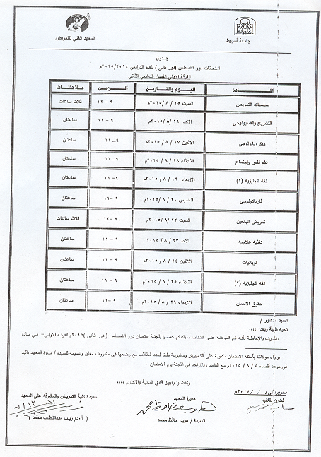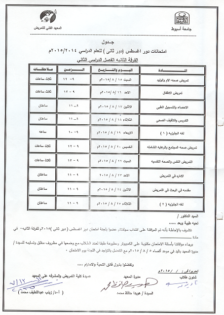جدول امتحانات دور أغسطس 2015 الفصل الدراسى الثانى للفرقة الثانية بالمعهد الفنى للتمريض(دور ثانى) Read more about جدول امتحانات دور أغسطس 2015 الفصل الدراسى الثانى للفرقة الثانية بالمعهد الفنى للتمريض(دور ثانى) جدول امتحانات دور أغسطس 2015 الفصل الدراسى الثانى للفرقة الثانية بالمعهد الفنى للتمريض(دور ثانى) 21 يوليو 2015