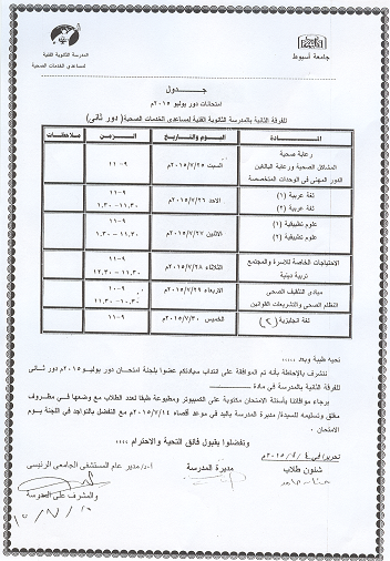 جدول امتحانات دور يوليو 2015الفرقة الثانية بالمدرسة الثانوية الفنية لمساعدى الخدمات الصحية(دور ثانى) Read more about جدول امتحانات دور يوليو 2015الفرقة الثانية بالمدرسة الثانوية الفنية لمساعدى الخدمات الصحية(دور ثانى) جدول امتحانات دور يوليو 2015الفرقة الثانية بالمدرسة الثانوية الفنية لمساعدى الخدمات الصحية(دور ثانى) 26 يوليو 2015