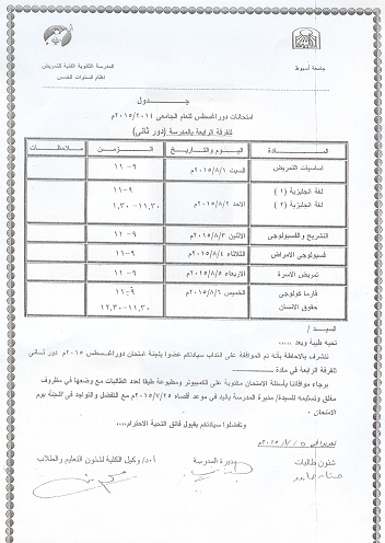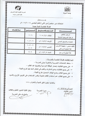 جدول امتحانات دور سبتمبر(دور ثانى) للعام الجامعى2014/2015 الفرقة الخامسه بالمدرسة الثانوية نظام الخمس سنوات لائحه جديده Read more about جدول امتحانات دور سبتمبر(دور ثانى) للعام الجامعى2014/2015 الفرقة الخامسه بالمدرسة الثانوية نظام الخمس سنوات لائحه جديده جدول امتحانات دور سبتمبر(دور ثانى) للعام الجامعى2014/2015 الفرقة الخامسه بالمدرسة الثانوية نظام الخمس سنوات لائحه جديده 5 أغسطس 2015