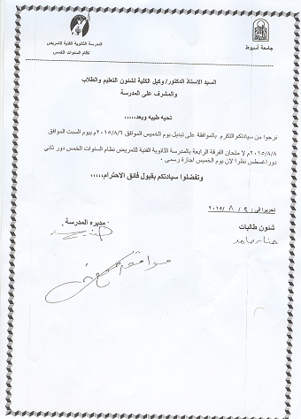 تنبيه هام عن تعديل جدول امتحانات الدور الثانى Read more about تنبيه هام عن تعديل جدول امتحانات الدور الثانى تنبيه هام عن تعديل جدول امتحانات الدور الثانى 5 أغسطس 2015