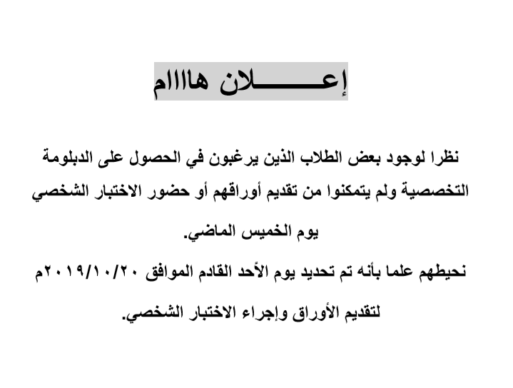 اعلان عن الدبلومة التخصصية فى التمريض Read more about اعلان عن الدبلومة التخصصية فى التمريض اعلان عن الدبلومة التخصصية فى التمريض تصنيف الخبر Alumni 16 أكتوبر 2019