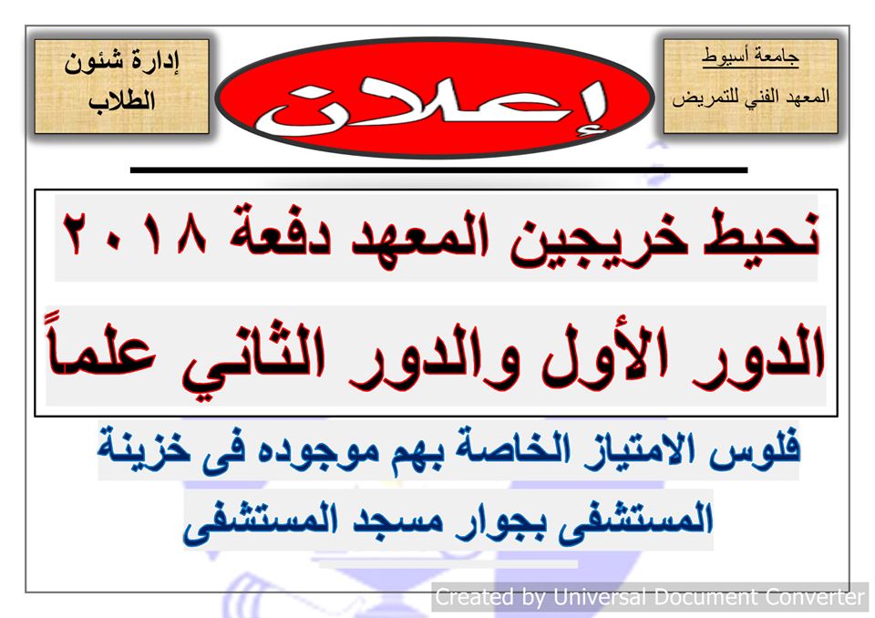 اعلان لخريجين المعهد دفعة 2018 Read more about اعلان لخريجين المعهد دفعة 2018 اعلان لخريجين المعهد دفعة 2018 تصنيف الخبر Alumni 19 ديسمبر 2019
