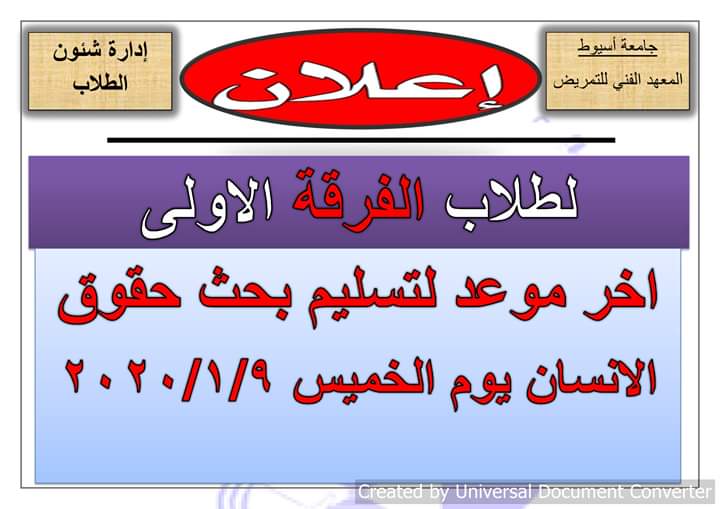 تنبيه لطلاب الفرقة الأولى Read more about تنبيه لطلاب الفرقة الأولى تنبيه لطلاب الفرقة الأولى تصنيف الخبر Alumni 29 ديسمبر 2019