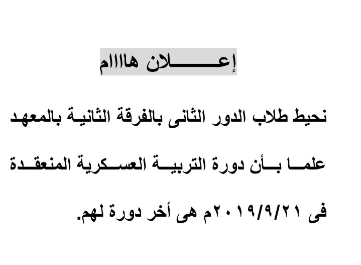 اعلان عن امتحان اعمال السنه لمادة اللغة الانجليزية للفرقة الاولى بالمعهد