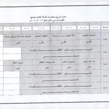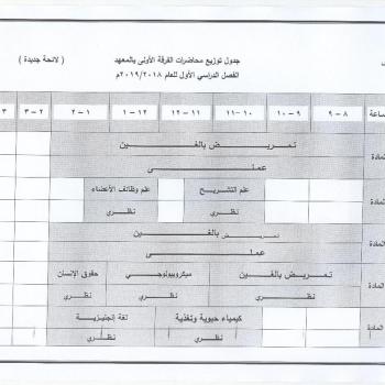 جدول توزيع محاضرات الفرقة الاولى