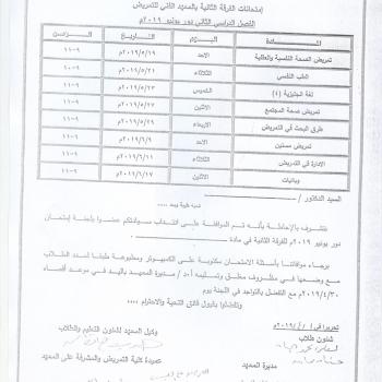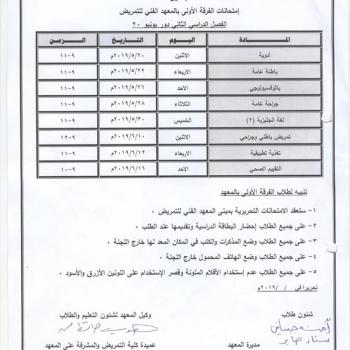 جدول إمتحانات الفرقة الثانية بالمعهد