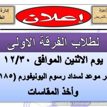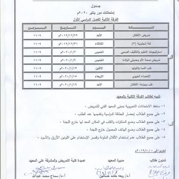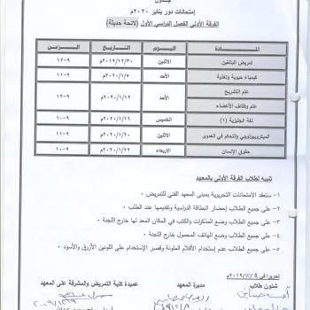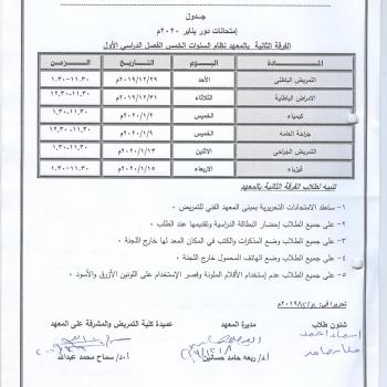 جدول امتحانات الفرقة الأولى بالمعهد لائحة حديثة