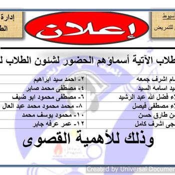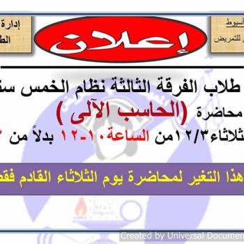 تنبيه لطلاب الفرقة الثالثة بالمدرسة