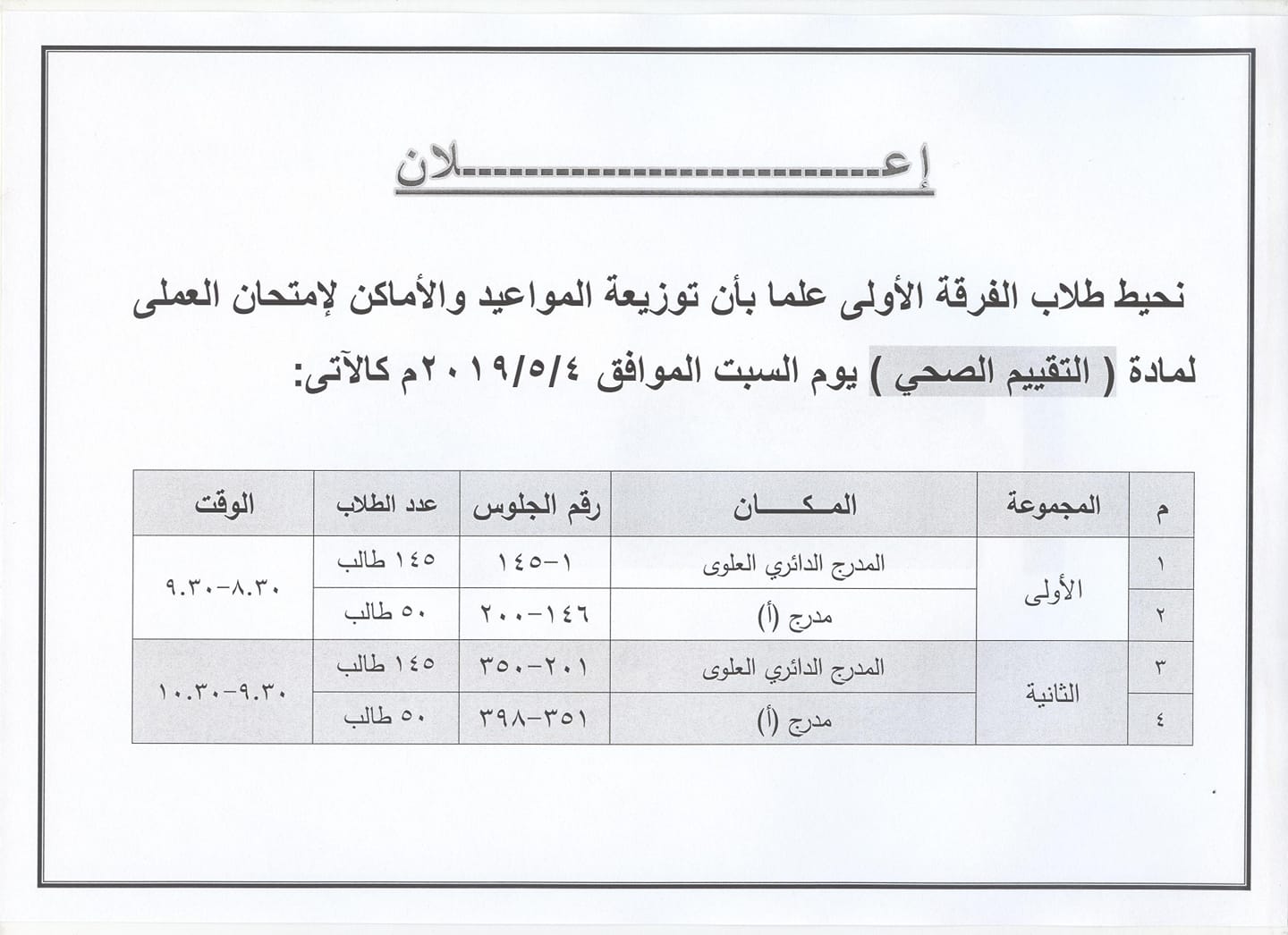 على جميع الطلاب الالتزام بالمواعيد وأماكن الإمتحان 2 مايو 2019 على جميع الطلاب الالتزام بالمواعيد وأماكن الإمتحان