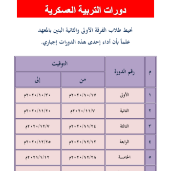 مواعيد الدراسة لطلاب الفرقة الثانية بالمعهد