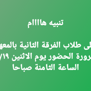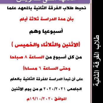 تنبيه لطلاب الفرقة الثانية بالمعهد