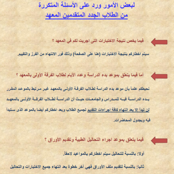 خاص بالطلاب الجدد المتقدمين للمعهد
