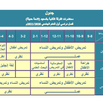 جدول محاضرات الفرقة الثانية بالمعهد (لائحةحديثة)