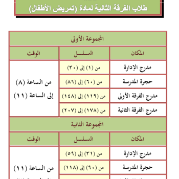 توزيعة طلاب الفرقة الثانية لمادة (تمريض الأطفال)