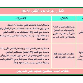 المقرر اجرائه يوم الاثنين 10/26 للفرقة الأولى