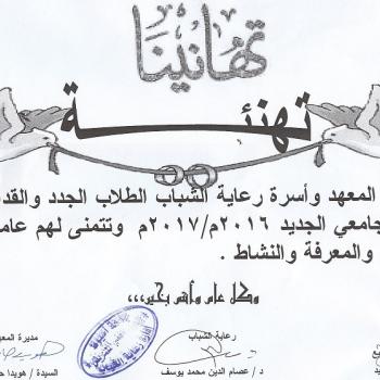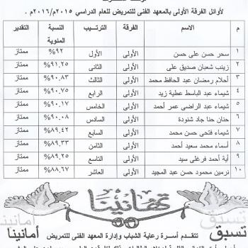 لوحة شرف لأوائل الفرقة الأولى بالمعهد للعام الدراسى 2015م/2016م