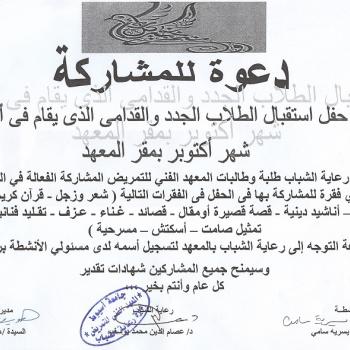 دعوة للمشاركة بالنشاط الثقافى بالمعهد
