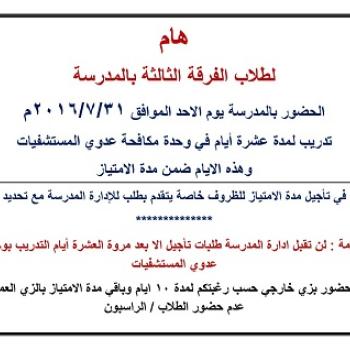 هام لطلاب الفرقة الثالثة بالمدرسة