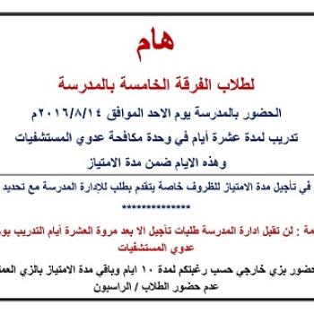 هام لطلاب الفرقة الخامسة بالمدرسة