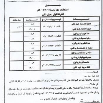 جداول امتحانات دور يوليو ( دور ثانى ) 2015/2016 للفرقة الاولى بالمدرسة الثانوية الفنية لمساعدى الخدمات الصحية