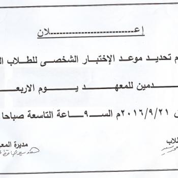 تم تحديد موعد الإختبار الشخصى للطلاب الجدد المتقدمين للمعهد