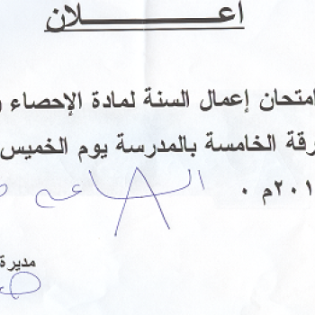 اعلان عن إمتحـان أعمال السنه لمادة الإحصاء والتسجيل الصحى للفــرقــــة الخامسة بالمدرسة
