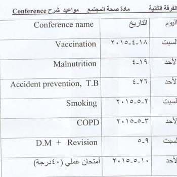 مواعيد شرح conference لمادة صحة المجتمع الفرقة الثانية